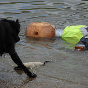 Wasserrettungsprüfung III: Bergen des Bootes durch den Hund. ( UO BH III)